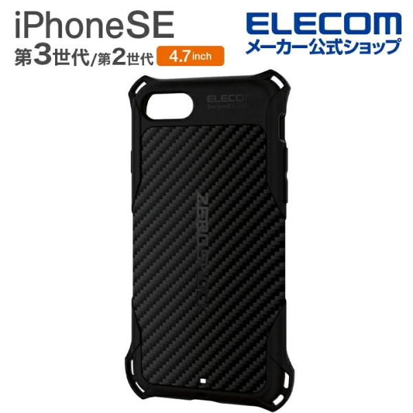 エレコム iPhone SE 第3世代 / 第2世代 ソフトケース ZEROSHOCK グリップ 4.7インチ ソフト ケース カバー ゼロショック グリップ ブラック┃PMWA22SZEROGBK