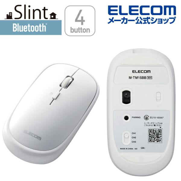 Bluetoothマウス 充電式 Bluetooth 4.2 薄型 マウス “Slint” 4ボタン 薄型 充電式 3台同時接続 ホワイト┃M-TM15BBWH エレコム 在庫処分