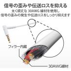 - マイク対応φ3.5mm4極ステレオミニプラグを持つヘッドホン・イヤホンを接続する時に便利な延長ケーブルです。 内部線材どうしの摩擦による劣化を防ぐフィラーを内蔵しています。 太く頑丈な30AWG線材を使用しているので、延長による伝送ロスを徹底的に抑えます。 高純度OFC99.9%仕様により、信号の歪みの発生や伝送ロスをしっかり抑えます。 コネクターには、通常よりブッシュを長くすることでプラグ部分にかかる負担を軽減するロングブッシュ構造を採用しています。 耐久性が高く、スマートフォン・オーディオプレーヤー本体を操作する際に邪魔になりにくいL字コネクターを採用しています。 サビや信号の劣化を防止する金メッキプラグを採用しています。 コードの長さは持ち運びに便利な1mです。