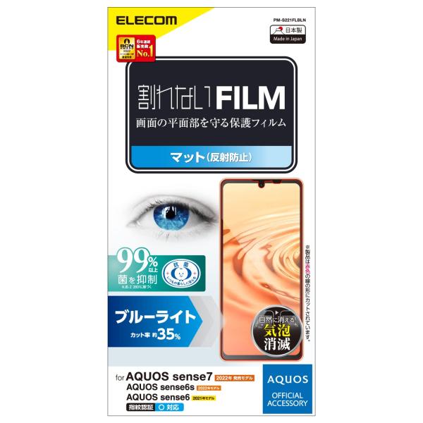 AQUOS sense6s(SHG07)/AQUOS sense6の液晶画面を傷や汚れから守る、指紋防止、ブルーライトカット、反射防止タイプの液晶保護フィルムです。