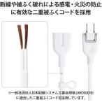 - [エレコム シャッター付き電源延長コード(0.5m) ホワイト T-X01-2105WH [TX012105WH]] の商品説明●大きなアダプターでも他のプラグや差込口に干渉せずに接続できる、短めの電源延長ケーブルです。●差込口は1個口で、極性のある2ピン式プラグ(左右のピンの幅が異なるタイプ)・3ピン式プラグも接続できる構造になっています。 ※3ピン式プラグ使用時、アースは機能しません。●電源プラグに極性はありません。●接続機器で極性を合わせる必要がある場合、コンセントの長い方の穴と電源プラグの目印線側を合わせて差し込んでください。●使用しない際に差込口へのホコリの侵入を防止する「ホコリ防止シャッター」を装備しています。●差込口の一部には耐熱性に優れた熱硬化性樹脂を使用しており、万一の発熱の際にも融解しにくく、電気火災の防止に有効です。●直径10mmの吊り穴を配したシリコン製のタグが付属しており、フックなどに引っ掛けることができます。●電源コードには一般社団法人日本配線システム工業会規格(JWDS0010)に適合した二重被ふくコードを採用しており、断線や被ふく破れによる感電・火災の防止に有効です。●プラグには栓刃間に火災の原因となるトラッキング現象防止に有効な熱硬化性樹脂を配し、感電の危険を抑制する絶縁スリーブを装備しています。●狭い場所でも配線しやすい180度スイングプラグを採用しています。●エレコム社環境認定基準を1つ以上満たし、『THINK ECOLOGY』マークを表示した製品です。●環境保全に取り組み、製品の包装容器におけるプラスチック重量を、社内基準製品より20%以上削減した製品です。●環境保全に取り組み、製品の包装容器が紙・ダンボール・ポリ袋のみで構成されている製品です。[エレコム シャッター付き電源延長コード(0.5m) ホワイト T-X01-2105WH [TX012105WH]]のスペック●本体差込口形状:2ピン(極性のある2ピン式プラグ対応、3ピン式プラグ対応※アース機能はありません)●本体差込口個数:1個口●プラグ仕様:2ピン●ほこりシャッター:○●固定方法:吊り穴タグを利用した仮固定●二重被ふく:○●スイングプラグ:○●絶縁キャップ付きプラグ:○●材質:PVC樹脂、ユリア樹脂、ポリカーボネート樹脂●定格:125V/15A/1500Wまで●コード長:0.5m●使用可能地域:日本国内専用●電気用品安全法:PSE適合●保証期間:1年●寸法:W3.3×H2.2×D6.0cm(コード部分及びプラグ部分を除く)●質量:100g●付属品:吊り穴タグ○初期不良のみ返品可