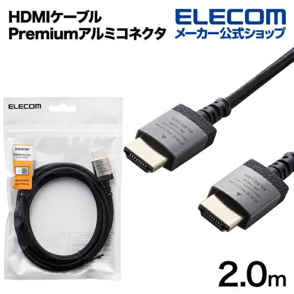エレコム HDMIケーブル Premium HDMI ケーブル アルミコネクタ スリムタイプ ナイロンメッシュケーブル 2.0m ブラック┃DH-HDP14ES20SBK