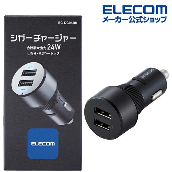 エレコム シガーチャージャー ストッパー付き カーチャージャー 車載 充電器 抜け防止 24W USB-A×2 ブラック┃EC-DC06BK