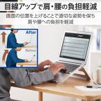 説明:ノートパソコンの画面の位置を調節し、作業時の姿勢を改善することができる、角度無段階調節の縦横兼用ノートパソコンスタンドです。スマートフォンスタンドが付属しているので、同時に操作することが可能です。■対応サイズ:10〜17インチノートパソコン ■耐荷重:約6kg ■寸法:折りたたみ時:幅約270mm×奥行約232.8mm×高さ約41.9mm、組立時:幅約270mm×奥行約232.8mm×高さ約125.2mm ※ヒンジ部角90度の場合 ■質量:約720g ■色:シルバー ■セット内容:パソコンスタンド本体、鉄板シール、吸着強化フィルム ■材質:アルミ合金、シリコン、マグネット