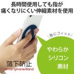 背面に貼りつけることで指を通してスマートフォンの落下を防げるシリコン製のスマホバンドです。超極薄でフラットな設計なのでかさばらず、ワイヤレス充電に対応します。