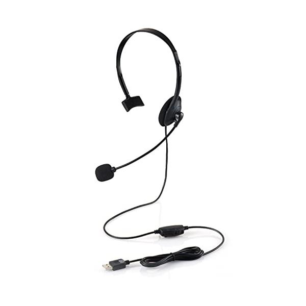 エレコム(ELECOM) ヘッドセット オーバーヘッド マイク付き USB ミュート機能 ボリューム調整 フレキシブルアーム 軽量 小型 片耳