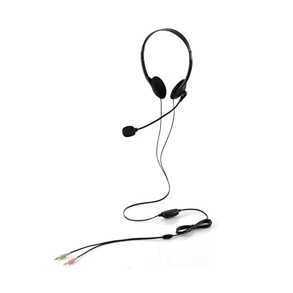 エレコム ヘッドセット オーバーヘッド マイク付き 3極 3.5mm接続 ミュート機能 ボリューム調整 フレキシブルアーム 軽量 小型 両耳 1