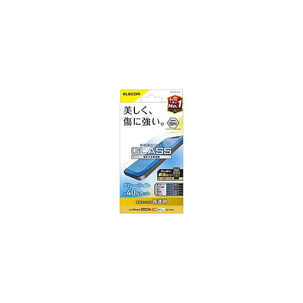 iPhone 16e / 14 / 13 / 13 Pro ガラスフィルム 高透明 ブルーライトカット 強化ガラス 表面硬度10H 指紋防止 飛散防止 エアーレス PM-A22AFLGGBL