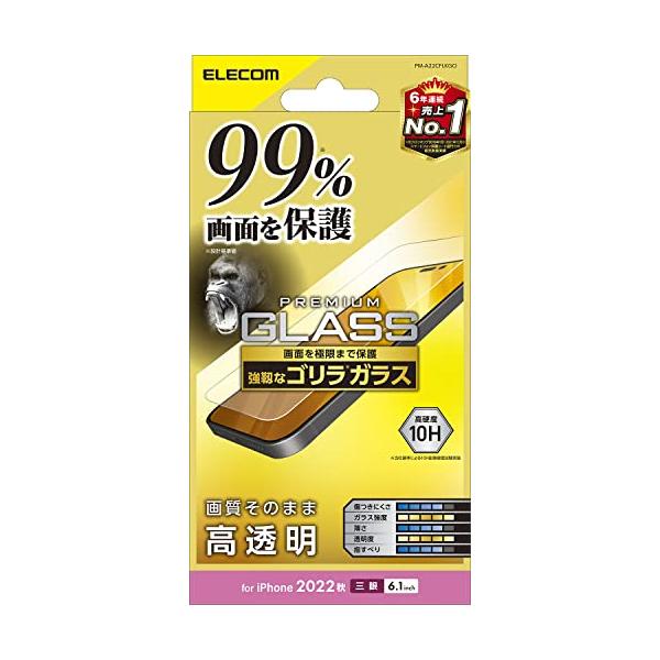 エレコム iPhone 14 Pro ガラスフィルム 液晶カバー率99% ゴリラ 薄型 0.21mm 強化ガラス 表面硬度10H 指紋防止 飛散
