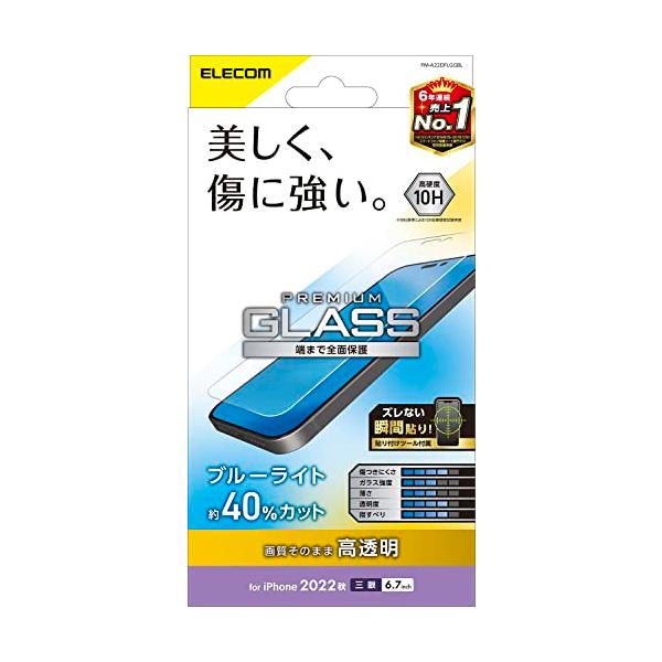 エレコム iPhone 14 Pro Max ガラスフィルム ブルーライトカット 強化ガラス 表面硬度10H 指紋防止 飛散防止 エアーレス 光
