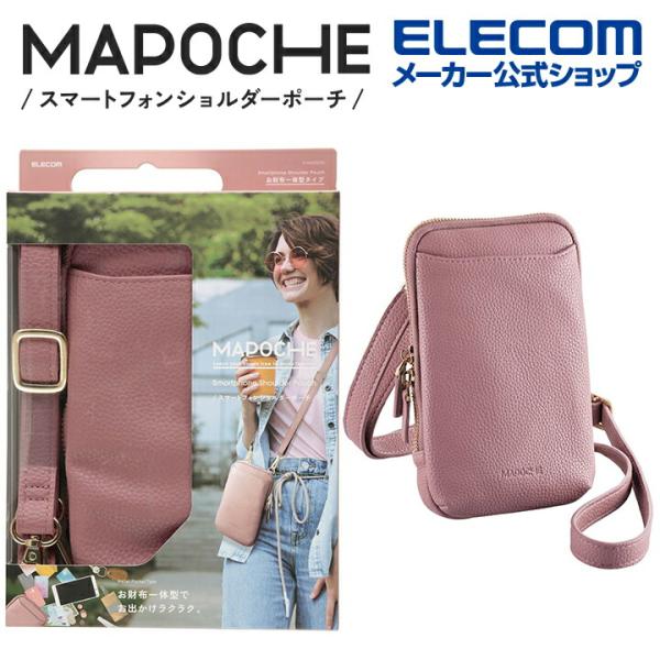 スマートフォン 用 ショルダーポーチ MAPOCHE スマホ汎用 ショルダーポーチ スマホ ショルダー ポーチ ダスティピンク┃P-MAP01PN エレコム 在庫処分