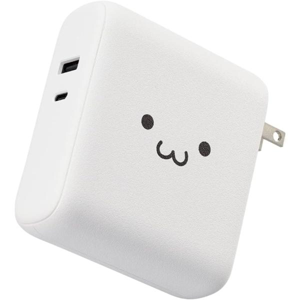 エレコム モバイルバッテリー コンセント一体型 10000mAh USB PD対応 20W出力 2ポート TypeC×1 USBA×1 しろちゃん ホワイトフェイス DE-AC07-10000WF