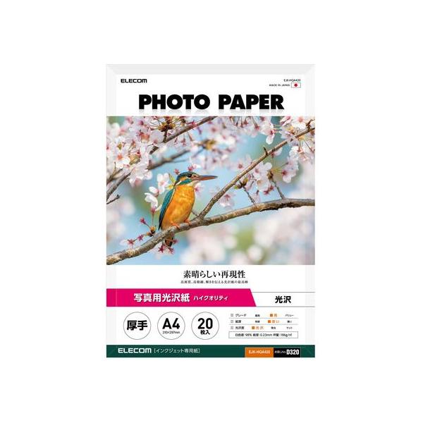 【お取り寄せ】エレコム 写真用光沢紙 厚手 A4 20枚 EJK-HQA420