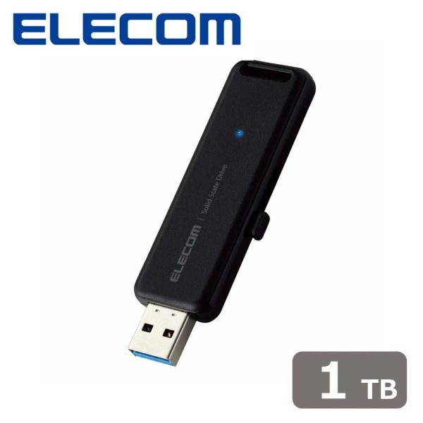 エレコム|ELECOM SSD 外付け 1TB USB3.2 Gen2 読出最大1000MB/秒 ノック式 高速 耐衝撃 ブラック ESD-EMB1000GBK 返品種別B