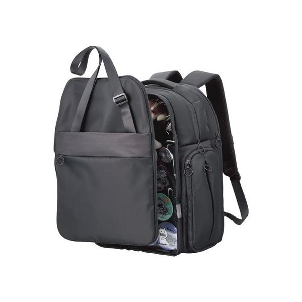 - 【返品種別A】□「返品種別」について詳しくはこちら□2022年12月 発売Joshin web試用レポートあり!あなたと“推し”との日常を応援する、推しごとバックパック・Lサイズです。◆「擬態モード」と「推し活モード」を切り替えられる日常のお出かけの際にも街に溶け込み、会場付近までの移動中にも活躍する「擬態モード」と、ぬいぐるみやバッジをアピールできる「推し活モード」を切り替えられます。◆普段は隠せる大きな透明窓普段は隠せる大きな透明窓で、大好きな推しをバッチリアピールできます。◆安心のたっぷり大容量イベント時のグッズ購入はもちろん、ちょっとした遠征でも安心の、たっぷり大容量です。◆独立したガジェット収納気室ノートパソコンやタブレットなど、作業・鑑賞に便利なデジタル機器を整理して収納できる、独立したガジェット収納気室を備えています。◆ファスナー付きのサイドポケットバッグを下ろさずに汗拭き用のタオルやドリンクなどを素早く取り出せる、ファスナー付きのサイドポケットを両側面に採用しています。◆バッグを背負ったままメイン気室の荷物を出し入れできるサイドポケットのファスナーを大きく開くことで、バッグを背負ったままメイン気室の荷物を出し入れできます。グッズ交換などの際もスムーズです。◆背面大型スリーブポケット背面には、折り畳み式の椅子や付属のレインカバーの収納に最適な、大型のスリーブポケットを備えています。◆背面キャリーベルト背面のキャリーベルトによって、キャリーケースにバッグを固定して使用可能。遠征の際も使いやすい設計です。◆リングテープ&リング構造付きのアジャスターショルダーベルト部に、ICカードケースやカラビナの取付が可能なリングテープと、リング構造付きのアジャスターを備えています。◆撥水加工本体の表生地に、撥水加工を施しているので雨の日でも安心です。◆A4サイズのドキュメントケースの横入れに対応メイン気室は、A4サイズのドキュメントケースの横入れに対応しています。戦利品の保護にも便利です。◆収納サイズ15.6インチまでのノートパソコンを収納可能です。◆着脱式のディスプレイ用仕切りが付属面ファスナーでしっかり固定できる、着脱式のディスプレイ用仕切りが付属しています。ストラップや缶バッジを取り付けやすい粗目のメッシュ生地を採用しています。◆簡易2気室構造にできるディスプレイ用仕切りを折りたたんで固定することで、簡易2気室構造にすることができ、ぬいぐるみなど厚みのあるグッズの配置にも対応します。◆メイン気室の空間全体を見せることができるディスプレイ用仕切りを取り外すことで、メイン気室の空間全体を見せることが可能。自由に内部を装飾できます。◆専用のレインカバーが付属専用のレインカバーが付属しています。大切な推しを急な雨から守れます。※いずれも、内部への水の浸入を完全に防ぐものではありません。◆サコッシュとして使えるフロントパーツ取り外したフロントパーツにはショルダーベルトが付いているので、サコッシュとして使えます。◆便利な4つの小物ポケットサコッシュには便利な4つの小物ポケットがあり、イベント会場で荷物が多い際もお財布などをサッと出し入れできます。■ 仕 様 ■バッグタイプ:バックパック持ち運びタイプ:背負い気室数:2外形寸法:幅約340mm×厚さ約190mm×高さ約440mm内寸:メイン気室:幅約320mm×厚さ約120mm×高さ約420mm内寸:背面気室:幅約300mm×厚さ約45mm×高さ約420mmPC収納部内寸:幅約260mm×厚さ約30mm×高さ約365mm ※参考収納寸法ポケット(前面):ファスナーポケット×1、スリーブポケット×1ポケット(背面):スリーブポケット×1ポケット(側面):サイドアクセスポケット×2 ※メイン気室内部に直結ポケット(気室内):背面気室部:スリーブポケット×5カラー:ブラック材質:ポリエステル、PVC質量:約1300g拡張機能:サコッシュ分離機能拡張機能:簡易2気室化機能拡張機能:透明窓展開機能対応モデル:〜15.6インチ ノートパソコンPC収納部内寸備考:※内寸と収納できるパソコンの外寸は異なる場合がございます。詳しくはエレコムホームページの対応表でご確認ください。表面加工:撥水加工(表生地)付属品:専用レインカバー(ブラック)[BMOGBP02LBK]パソコン周辺>パソコン関連バッグ・ケース