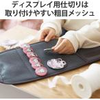 ●ディスプレイ用仕切りには、ストラップや缶バッジを取り付けやすい粗目のメッシュ生地採用。