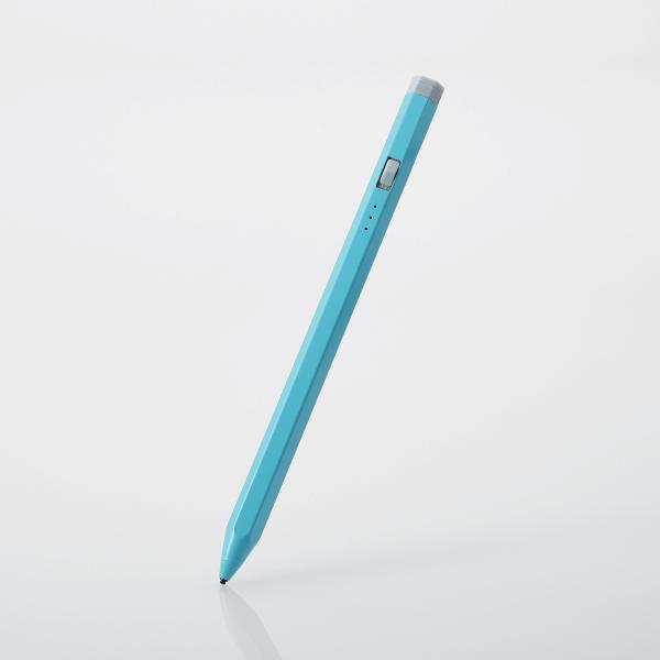- 鉛筆のような形で握りやすい、スマートフォン・タブレット用の充電式アクティブタッチペンです。指にフィットしやすく、使い慣れた鉛筆のように握れる六角形のボディーです。スライド式のスイッチで簡単にオン/オフができ、タッチペン本体に名前が書けるスペースがあります。USB Type-C(TM)ケーブルで充電ができ、約17時間の連続使用が可能です。■鉛筆のような形で握りやすい、スマートフォン・タブレット用の充電式アクティブタッチペンです。 ■指にフィットしやすく、使い慣れた鉛筆のように握れる六角形のボディーです。 ■スライド式のスイッチで簡単にオン/オフができます。 ■タッチペン本体に名前が書けるスペースがあり、紛失を防ぎます。 ■ペン先は約1.5mmと細いので、繊細な描き込みができます。 ■ペアリングは不要で、電源をオンにするだけですぐに使用できます。 ■操作しない状態が5分間続くとオートスリープ機能が働き、電源の消し忘れを防ぎます。 ■タッチペン側面のマグネット面で、タブレットはもちろん、マグネットが付けられる面であれば冷蔵庫などにも吸着が可能です。 ■※マグネット面はELECOMロゴが印字されている側面です。それ以外の面はマグネットで吸着ができないのでご注意ください。 ■※タブレットに装着するケースによっては、タブレット本体のマグネット部分が隠れてしまい、本製品を付けられない場合があります。 ■LEDランプでバッテリーの残量が分かります。 ■約17時間の連続使用が可能です。 ■※ご使用状態によっては、目安の時間よりも早く充電が必要になる場合があります。 ■充電用ポートは、USB Type-C(TM)です。 ■充電用のUSBポートにはキャップが付いていて、ホコリの侵入を防ぎます。 ■USB Type-C(TM)ケーブルが付属しています。 ■※本製品にACアダプター(AC充電器等)は付属していないため、出力5V/500mA以上のUSB出力アダプターを別途ご用意ください。 ■ペン先は当社製品の「タッチペン交換用ペン先(充電式)」(P-TIPACST02)と交換が可能です。 ■※液晶保護フィルムの種類によっては、操作時にこすれ音が生じたり、タッチペンの反応が悪くなったりすることがあります。■対応機種:各種スマートフォン・タブレット ※全てのタッチパネル電子端末での動作を保証するものありません。 ■外形寸法:全長:約155mm、直径:約10mm、ペン先:約1.5mm ■材質:本体:アルミニウム、ペン先:ポリアセタール、電源スイッチ部:ABS樹脂、USB Type-C(TM)ポート差込キャップ:シリコン ■カラー:ブルー ■質量:約14g ■電池:リチウムイオン電池 ■使用時間:約17時間 ※ご使用状態によっては、この目安の時間よりも早く充電が必要となる場合があります。 ■充電時間:約1時間 ※ご使用状況や環境により変化します。 ■保証期間:1年間 ■付属品:USB Type-C(TM)(USB-C(TM))ケーブル ※USB Type-C and USB-C are trademarks of USB Implementers Forum. ■筆圧感知:× ■ワイヤレス充電:× ■傾き検知:× ■パームリジェクション:× ※画面に手をついた状態では描画できません。 ■備考:※特定のアプリやソフトにおいて、専用タッチペンのみでの描写設定をしている場合は使用できないことがあります。メーカー希望小売価格はメーカーカタログに基づいて掲載しています