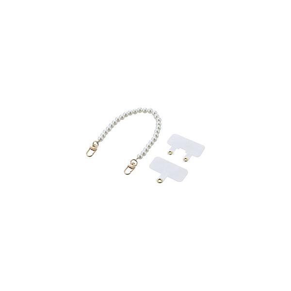 - 手首に通して使えるパールタイプのスマートフォン用ハンドストラップです。手首や腕から提げて持ち歩けるので、両手がふさがらずいつでもサッとスマートフォンの操作ができます。パールとゴールドの金具で、カジュアルなスタイルにも映える上品なパールタイプです。ケーブル穴1口用とスピーカー穴2口用の2種類のストラップホールシートが付属しているので、お使いのスマホケースにストラップホールがなくても使用できます。