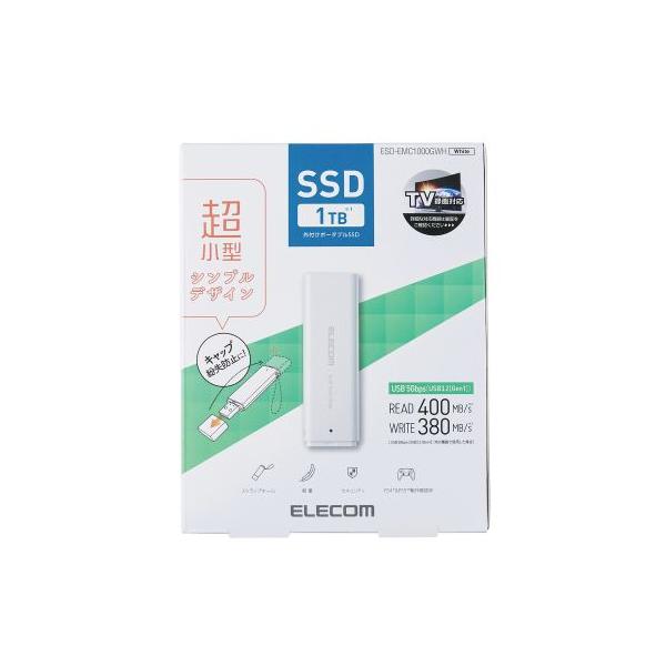 エレコム SSD 外付 1TB USB3.2 Gen1 読出最大400MB/秒 超小型 ポータブル キャップ式 耐衝撃 ホワイト メーカー在庫品