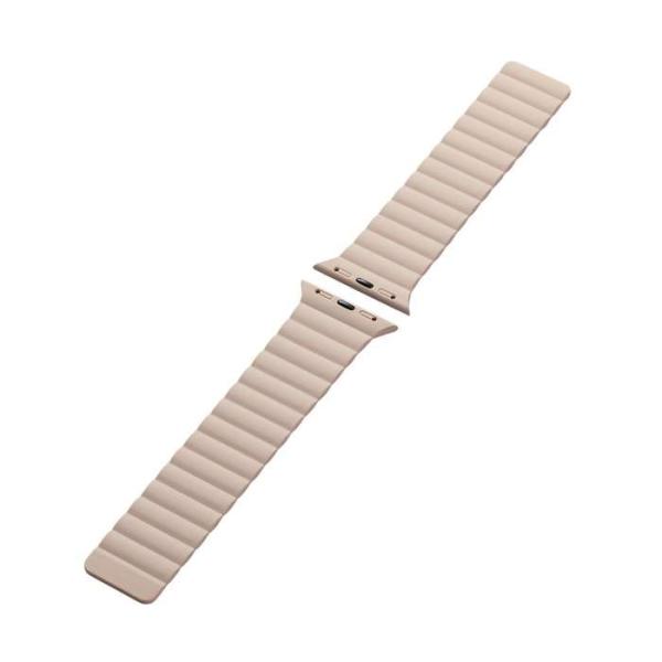 - ■細かな調整でしなやかにフィットし、バックルを使わず簡単に装着できるApple Watch用マグネットバンドです。■バンドに埋め込まれたマグネットで、バックルを使わず簡単に装着できるApple Watch用マグネットバンドです。 ■※激しい運動や強い衝撃が予想される場面での使用は、バンド固定用の磁石が外れるおそれがあるため推奨しません。 ■細かな長さ調整も簡単にできて手首にしなやかにフィットします。 ■柔らかく装着感の良いシリコン製です。 ■汗や水に強く、耐衝撃性に優れたシリコン素材を採用しています。 ■ラグ部分はバンドから続く一体形状で成形されており、Apple Watchとバンドをしっかり接続します。 ■バンドをApple Watchに装着したままで液晶画面の確認、本体の操作、各種ボタン操作、純正の磁気充電ケーブルへの設置が可能です。 ■自社環境認定基準を1つ以上満たし、『THINK ECOLOGY』マークを表示した製品です。 ■環境保全に取り組み、製品の包装容器におけるプラスチック重量を、社内基準製品より20%以上削減した製品です。■対応機種:Apple Watch Series 11/10[42mm]/Apple Watch Series 9/ 8/7 [41mm]/Apple Watch SE (第3世代)/Apple Watch SE (第2世代)/SE/Series 6/5/4 [40mm]/Apple Watch Series 3/2/1 [38mm]■セット内容:バンド×1■材質:バンド本体:シリコン■カラー:ベージュ■バンドサイズ:115〜180mm ※装着可能な手首のサイズエレコムダイレクトショップ