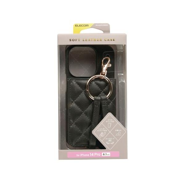エレコム iPhone14 Pro用オープンソフトレザーケース ショルダーストラップ付 キルテ メーカー在庫品
