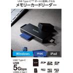 SDカードリーダー USB Type-C 直挿し エレコム MR3C-D206BK EC 簡易パッケージ カードリーダー 高速転送 UHS-II SD microSD Mac iPad