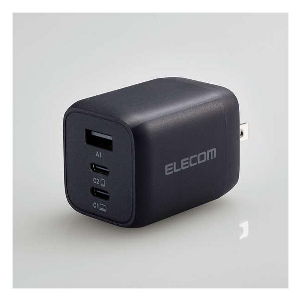 - エレコム ACDC-PD4465BK USB Power Delivery 65W キューブAC充電器(C×2+A×1) ブラック ACDCPD4465BK発売日:2023年6月14日●USB Type-C(TM)(USB-C(TM))ポートとUSB Type-Aポートの合計3ポートを搭載し、iPhoneなどのスマートフォンと完全ワイヤレスイヤホンとWindowsなどのノートパソコンを3台同時充電できるUSB AC充電器です。小型・軽量なので外出や出張などの際の持ち運びに便利です。●USB Type-C(TM)(USB-C(TM))ポートとUSB-Aポートの合計3ポートを搭載し対応するスマートフォン、タブレット、ノートパソコンなどを充電できる、GaN(窒化ガリウム)を採用し小型で軽量なUSB AC充電器です。●※USB Power Delivery規格65Wまでで充電できる機器に限ります。●出力端子が3ポートあるので、iPhoneなどのスマートフォンと完全ワイヤレスイヤホンとWindowsなどのノートパソコンを3台同時充電できます。●※2ポート以上同時出力時は合計最大65Wとなります。●USB Type-Cポートは、USB Power Delivery規格、オプションのPPS(Programmable Power Supply)規格に対応し、同規格に対応するノートパソコンやスマートフォン、タブレットなどを充電可能です。●USB Type-Cポート単独使用時、機器に応じて出力が5V/3A、9V/3A、12V/3A、15V/3A、20V/3.25Aと可変し、iPhoneなどのスマートフォンから、iPadなどのタブレット、高性能なWindowsノートパソコンまで幅広く充電できます。●USB-Aポートは、最大出力12W(5V2.4A)でスマートフォンや完全ワイヤレスイヤホン、スマートウォッチなどを充電、給電ができます。●接続された機器を自動的に見分けて適した出力で充電できる おまかせ充電 に対応しています。●小型・軽量なので外出や出張などの際の持ち運びに便利です。 【仕様】対応機種:各USB Type-C(TM)(USB-C(TM))ポートからUSB Power Delivery (65W)及びオプション規格であるPPS(Programmable Power Supply)、またはUSB-Aポートから12Wの規格内で充電が可能な機器。2ポート以上同時接続時、合計最大65Wまでの出力で充電、給電可能な機器とその組み合わせ。コネクタ形状:USB Type-C(TM)(USB-C(TM))ポート×2、USB-Aポート×1定格入力電圧:AC100〜240V、50/60Hz定格入力電流:2A外形寸法:幅約52mm×厚み約38mm×高さ約40.5mm重量:約112gカラー:ブラックコンセントプラグ仕様:90度スイング構造使用温度:0℃〜35℃法令:◇PSE 特定電気用品保証期間:1年間その他:※USB Type-C and USB-C are trademarks of USB Implementers Forum定格出力電力1:単独接続時:USB Type-C1(TM)(USB-C1(TM))/USB Type-C2ポート最大出力65W、PPS最大出力45W、USB-Aポート最大出力12W定格出力電力2:2ポート同時接続時(1):USB Type-C1+USB Type-C2ポート:合計最大出力65W、USB Type-C1ポート最大出力45W、PPS最大出力45W、USB Type-C2ポート最大出力20W、PPS最大出力20W定格出力電力3:2ポート同時接続時(2):USB Type-C1+USB-A ポート:合計最大出力57W、USB Type-C1ポート最大出力45W、PPS最大出力45W、USB-Aポート最大出力12W、USB Type-C2+USB-Aポート:合計最大出力15W、USB Type-C2ポート最大出力7.5W、USB-Aポート最大出力7.5W定格出力電力4:3ポート同時接続時:合計最大出力60W、USB Type-C1ポート最大出力45W、PPS最大出力45W、USB Type-C2ポート最大出力7.5W、USB-Aポート最大出力7.5W定格出力電圧1:単独接続時:USB Type-C1(TM)(USB-C1(TM))/USB Type-C2ポート:5V/9V/12V/15V/20V、PPS出力3.3〜16V、USB-Aポート:5V定格出力電圧2:2ポート同時接続時(1):USB Type-C1+USB Type-C2ポート:USB Type-C1ポート:5V/9V/12V/15V/20V、PPS出力3.3〜16V、USB Type-C2ポート:5V/9V、PPS出力3.3〜11V