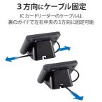 USBケーブルを裏のガイドで左右中央の3方向から出すことができ、パソコンへの接続がしやすい非接触式ICカードリーダライターMR-ICA001BK専用のカード読み取り用スタンドです。