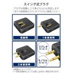 ・2本のφ3.5mmプラグがそれぞれ回転するスイング式で、2本/1本どちらのプラグにも対応しています。航空機内のφ3.5mmデュアルジャックにもテレビのφ3.5mmヘッドホンジャックにも対応です。
