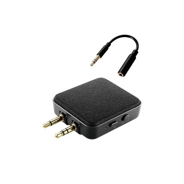 ・機内エンターテイメントやテレビの音をいつも使っている無線イヤホン・ヘッドホンで聴くことができるBluetoothオーディオトランスミッタ―/レシーバーです。2本のφ3.5mmプラグがそれぞれ回転するので、航空機内のφ3.5mmデュアルジャックにもテレビのφ3.5mmヘッドホンジャックにも対応。充電しながら使用できるので、バッテリー残量を気にする必要はありません。