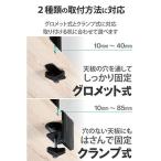 - ↑↑↑正確な在庫状況は上記バナー「在庫状況を確認する」をクリックして頂き、必ずご確認ください。 ■17〜32インチサイズのモニターに対応するガススプリング式のデュアルモニターアーム、支柱付きです。■モニター下のスペースを有効活用してデスクの上を広く使うことができます。■軽い力で動かせるガススプリング式です。■モニターの位置を自在に動かせて、お好みのポジションにセットできます。■モニターを2台設置できるデュアルアームタイプです。■可動域の広い5軸可動のアームタイプで、高さが調節しやすい支柱付きです。■VESA規格(75mm×75mm、100mm×100mm)に準拠したモニターに対応しています。■デスクの天板に挟んで固定するクランプ式と、天板に穴を開けてボルトを通して固定するグロメット式の2通りの取り付け方法が選べます。■モニター背面にVESAマウントを取り付けて、モニターアーム取付部に上から差し込み、ネジで固定してからご使用ください。■モニターの使用角度が決まったら、接続部のネジをしっかりと締めて固定してください。■モニターからのケーブルをすっきりまとめることができる、ケーブルホルダー付きです。DPADS07BK対応サイズ:17〜32インチ 耐荷重:約1〜9kg(各アーム)寸法:幅約940mm×奥行約123mm×高さ約715mm 質量:約4.76kg 色:ブラック 取り付け画面数:2画面 材質:スチール、アルミ合金、ABS 可動方式:ガススプリング式 対応規格:VESA規格(75mm×75mm、100mm×100mm)可動範囲:パン:左90度/右90度、ローテーション:360度、チルト:上35度/下35度 取り付け可能天板厚:クランプ(挟んで固定):10〜85mm、グロメット(穴に通して固定):10〜40mm 固定方式:クランプ式/グロメット式 軸数:5軸 セット内容:アーム×1、ポール×1、VESAマウント×2、クランプ×1、ケーブルホルダー×1、クッションパッド×1、グロメット用上プレート×1、グロメット用下プレート×1 セット内容:ネジ×2、皿ネジ(M6×16)×3、六角レンチ(小)×1、六角レンチ(大)×1、ネジ(M4×12)×8、ネジ(M4×16)×8、ネジ(M5×12)×8、ネジ(M5×16)×8、ワッシャー×8、樹脂スペーサー×8モニターを2台設置できる支柱付きガススプリング式のデュアルモニターアーム