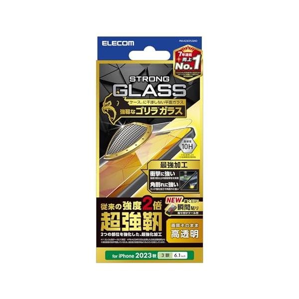 エレコム iPhone15 Pro ガラスフィルム ゴリラガラス 超強靭 エッジ強化加工 硬度10H 貼付けツール付き PM-A23CFLGHO