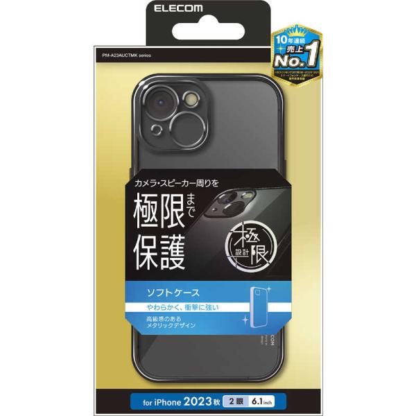 エレコム ELECOM iPhone 15(6.1インチ) ソフトケース/極限保護/メタリック/ブラック PM-A23AUCTMKBK