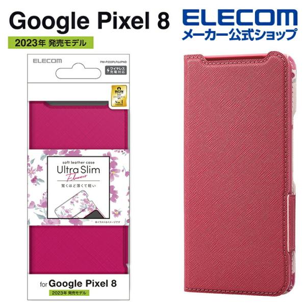 Google Pixel 8 用 ソフトレザーケース 薄型 磁石付 フラワーズ グーグルピクセル8 ディープピンク┃PM-P233PLFUJPND エレコム 在庫処分