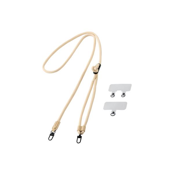 - [エレコム ショルダーストラップ/丸紐6mm ベージュ P-STSDH2R06BE [PSTSDH2R06BE]] の商品説明●肩から掛けられ、バッグやポケットから取り出さなくてもすぐにスマートフォンの操作ができるショルダーストラップです。●両手があいて、普段のお出かけはもちろん、お仕事や旅行などのイベント時にも活躍。落下、盗難、紛失防止にもなります。●ベーシックな無地カラーで、カジュアルやオフィスなどの幅広い服装やシーンで使えます。●ストラップは6mmの耐久性の高い素材の丸ひもを使用していて、調節パーツでお好みの長さにできます。●ストラップの縫製部分はソフトレザー素材のパーツで保護して強度を高めています。●取り外しやすいフックを使用しているので、ストラップの着脱が簡単にできます。●ケースにストラップホールがなくても、付属のストラップシートをスマートフォンとケースの間に挟むだけで使用でき、取り外しも簡単です。●ケーブル穴1口用とスピーカー穴2口用の2種類のストラップシート(透明)が付属しているので、どちらのタイプのケースにも使用できます。●ストラップシートはスマートフォンやケースを傷つけにくい柔らかい素材を使用しています。●ケースにフィットする0.6mmの薄型のストラップシートで簡単に装着できます。●ケースの種類は、ハイブリッドケース、ソフトケースをご使用ください(ケース背面が硬い素材のものを推奨します)。シリコン製のケースには使用しないでください。●ケースは、ケーブル穴がケース底面の中央にあるものや、スピーカー穴がケース底面に2カ所あるものが推奨です。ケーブル穴部分が大きく開口しているケースでの使用は推奨しません。●※耐荷重は約2.5kgまでです。また、250g以上の機器本体には使用しないでください。●エレコム社環境認定基準を1つ以上満たし、『THINK ECOLOGY』マークを表示した製品です。●環境保全に取り組み、製品の包装容器におけるプラスチック重量を、社内基準製品より20%以上削減した製品です。[エレコム ショルダーストラップ/丸紐6mm ベージュ P-STSDH2R06BE [PSTSDH2R06BE]]のスペック●耐荷重:約2.5kgまで(※250g以上の機器本体には使用しないでください。)●材質:ショルダーストラップ/ポリエステル・亜鉛合金・合成皮革、ストラップシート/PVC・亜鉛合金●寸法:ショルダーストラップ/全長約42.0〜78.0cm、シート/W6.5×H5.3×D0.06cm●セット内容:ショルダーストラップ、ストラップシート(透明)1口タイプ/2口タイプ各1枚○返品不可対象商品