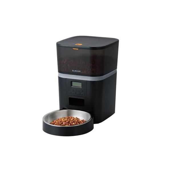 エレコム 自動給餌器 猫 中小型犬用 4L (約2.2kg) タイマー機能付 録音機能付 1日最大6回 蓋ロック 乾燥剤付属 ステンレス 1皿
