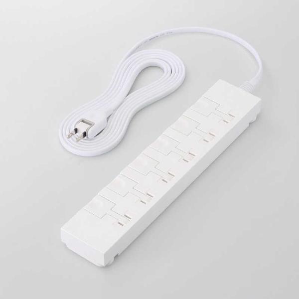 - エレコム T-KF07M-2630WH 磁石付きイージーリリース 6口 電源タップ 3m発売日:2024年2月15日●押すだけ簡単!片手でプラグが抜ける6個口の電源タップです。レバーを押すだけで楽にプラグを外せます。吊り穴・フック・マグネット付きで床面以外にも設置して使えるので、座ったままでの抜き挿しにも便利です。●レバーを押すだけで簡単に、片手でプラグを抜ける6個口のタップです。タップを手で押さえたりプラグを強い力で引き抜いたりする必要はありません。●力が弱い方が無理なくプラグを抜くのに便利。プラグの抜き挿しが頻繁に発生する方にもおすすめです。●底面に貼り付けられる、シリコン製のすべり止めを付属しています。レバーを押し込む際にタップが動きにくく安心です。●強力なネオジム磁石付き。デスクの脚やスチール家具などに吸着させて、床面以外に設置して使用できます。座った状態でプラグの抜き挿しも可能。吸着力が高く、プラグを複数挿しても落下しにくい設計です。●底部の回転パーツはフックとして使用可能。壁のネジ、パソコンラックのバーや網状のカゴなどに引っ掛けてタップを収納できます。吊り穴もあるため、紐を通して吊り下げることも可能です。●底部の回転パーツを出すことで、本体を水平に支えられます。重いACアダプターなどを接続した際にタップが引っ張られて横転することを防ぎます。●AC差込口には、不使用時にホコリの侵入を防止する「ホコリ防止シャッター」を装備しています。●AC差込口には耐熱性に優れた熱硬化性樹脂を使用しており、万が一の発熱の際にも融解しにくく、電気火災の防止に有効です。●サージ電流耐量2750A/5回、2500A/10回、制限電圧935Vmax(500A 8/20μs)の素子(バリスタ)を搭載しており、誘導雷による雷サージを吸収して接続機器を保護します。 【仕様】差込口仕様:2ピン差込口個数:6個口差込口間隔:40mm(差込口中心間寸法)プラグ仕様:2ピンACコード長:約3m定格:15A、125V、合計1500Wまで極性対応:◯スイッチ:×雷ガード:◯ほこりシャッター:◯抜け止め機能:×差込口キャップ:×通電表示ランプ:×二重構造:◯二重被ふく:◯絶縁キャッププラグ:◯スイングプラグ:◯マグネット:◯(ネオジム磁石)