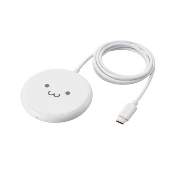 エレコム ELECOM ワイヤレス充電器 Qi認証 5W 卓上 滑り止めパッド ケーブル一体 おくだけ充電 しろちゃん(ホワイト×ブラック) W-QA25WF