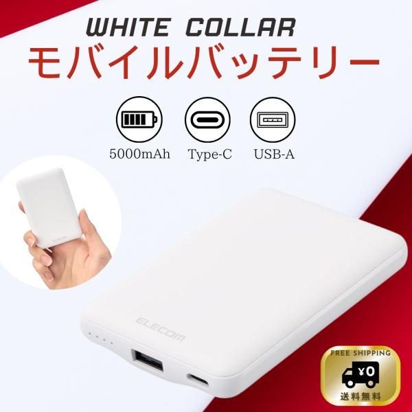 モバイルバッテリー スマホ充電器 エレコム 小型 防災電源 5000mAh タイプC USB-A ケーブル付 iPhone15/SE3 など対応 ホワイト DE-C45-5000WH