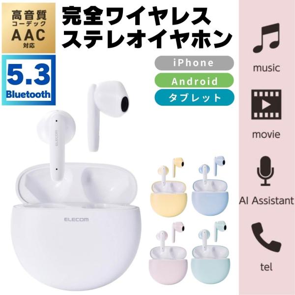 - ■装着時も収納時もコンパクトなBluetooth(R)完全ワイヤレスステレオヘッドホン。耳への負担が少なく、周囲の音や話し声が聞き取りやすいセミオープンタイプです。ミニマムなサイズ感・超軽量設計でスマートに持ち運べるデザインです。■装着時も収納時もコンパクトな、セミオープンタイプのBluetooth(R)完全ワイヤレスステレオヘッドホンです。 ■充電ケースはまるくてコロンとした形がポイント。マットな質感で手に馴染むデザインです。シックなモノトーンの「ホワイト」「ブラック」と、さりげなく個性を表現できる「ピンク」、ベーシックでファッションに合わせやすい「グレー」の4色展開です。 ■手のひらに収まるサイズの充電ケースは、約22mmの薄さ。小さなバッグや服のポケットに入れてもシルエットが崩れず、スマートに持ち運べます。 ■ヘッドホンは耳への負担を軽減し、周囲の音や話し声が聞き取りやすいセミオープンタイプです。耳への圧迫感が少なく、耳せんタイプが苦手な方にもおすすめです。 ■耳の形状に合わせたエルゴノミクスデザインによるフィット感と、片側わずか約3.3gの超軽量設計で、快適な装着感を実現しました。 ■高音質コーデックAACに対応し、iPhoneをはじめとしたAAC対応スマートフォンや音楽プレーヤーで、クリアなサウンドを体感できます。 ■φ14.2mmの外磁型ダイナミックドライバー・Micro ETEM Driver(ELECOM Torus External Magnet Driver)を採用し、小型ながら力強く、ワイドレンジでクリアな音質を実現します。 ■低遅延モードは、Bluetooth(R)特有の映像と音の遅延を軽減し、ストレスなく動画視聴やゲームを楽しめます。 ■ヘッドホンは出っ張りが少ないため、耳への掛かりが良い形状です。マスクや髪に引っかかりにくく、スマートに装着できます。 ■タッチセンサーの採用により耳元での操作がスムーズかつショックレスで、ヘッドホンが耳からずれにくいです。 ■音楽・動画の再生中や通話中などに、音量の調節をヘッドホンのタッチセンサーで手軽に行えます。 ■左右のヘッドホンが完全に独立しているためクロストークがなく、リアルなステレオイメージを再現します。 ■ヘッドホンは片側のみでも使用が可能です。 ■※使用していない片側のヘッドホンは、電源を切るか充電ケースに収納してください。 ■初期登録後は、充電ケースから取り出すだけでスマートフォンなどの機器と自動でペアリングします。 ■スマートフォンやタブレットだけでなく、パソコンなどのBluetooth(R)対応機器への接続も可能なため、テレワークにもお使いいただけます。 ■音楽を楽しむだけでなく、通話もできるマイクが内蔵されています。 ■Siriや Google アシスタント などの音声AIに対応し、ヘッドホンのタッチセンサーで簡単にスマートフォンなどの音声アシスタントが呼び出せます。音声操作で音楽をかけたり、音量調節をしたりすることが可能です。 ■※通話・音声AIは左右ヘッドホンのどちらか片方のマイクが有効になります。 ■ヘッドホンは1回の充電で約5.5時間の連続音楽再生が可能です。 ■充電ケースにはバッテリーを搭載し、ヘッドホンへの充電が可能です。トータルで最大約22時間の使用が可能です。 ■過充電保護と過放電保護を備えたリチウムイオン電池により、繰り返し充電して使用できます。 ■充電ケース内蔵のバッテリー状態がわかるように、バッテリーインジケーターを搭載しています。LEDの点滅状態で充電/残量レベルを把握できます。 ■スマートフォンとの接続時、スマートフォン画面でヘッドホンのバッテリー残量を確認できます。 ■充電ケースにはUSB Type-C(TM)ポートを搭載し、iPhone 15シリーズやAndroidなどのスマートフォンと同じケーブルで充電が可能です。 ■※USB Type-C and USB-C are trademarks of USB Implementers Forum ■自社環境認定基準を1つ以上満たし、『THINKECOLOGY』マークを表示した製品です。 ■環境保全に取り組み、製品の包装容器におけるプラスチック重量を、社内基準製品より20%以上削減した製品です。 ■環境保全に取り組み、製品の包装容器が紙・ダンボール・ポリ袋のみで構成されている製品です。■通信方式エレコムダイレクトショップ