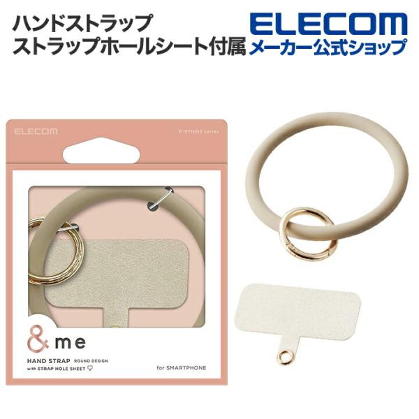 スマホハンドストラップ ハンドストラップ シリコンリング ラウンド ストラップホールシート付属(1口タイプ×1枚) &me ベージュ┃P-STHSI2BE エレコム 在庫処分