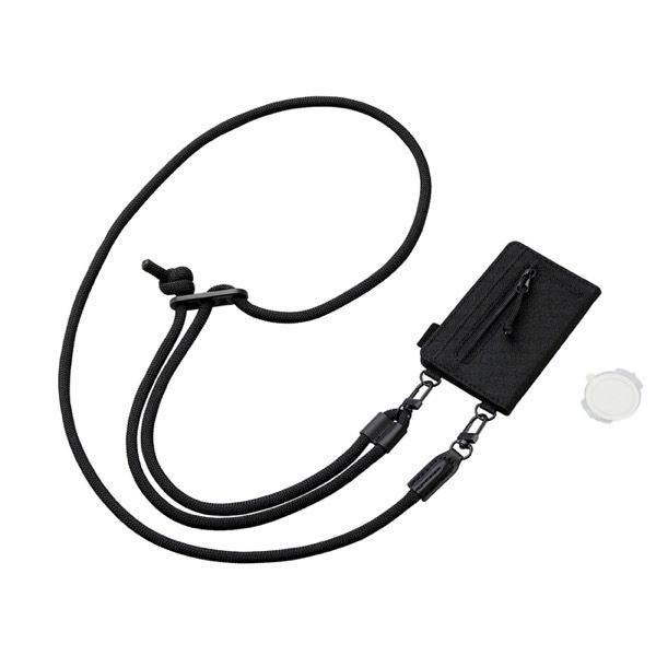 エレコム スマホショルダーストラップ カードケース付き 丸紐6mm ブラック