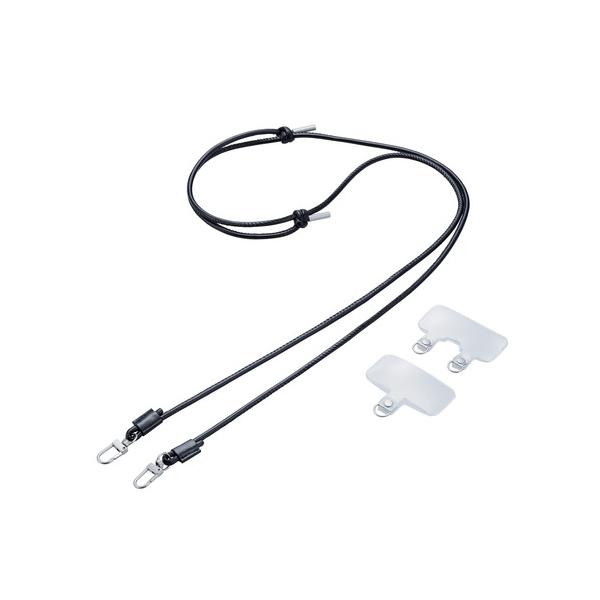 - エレコム P-STSDH2LR04BK スマホ ショルダーストラップ/レザー丸紐4mm/ブラック 42~75cm 長さ調整可 500