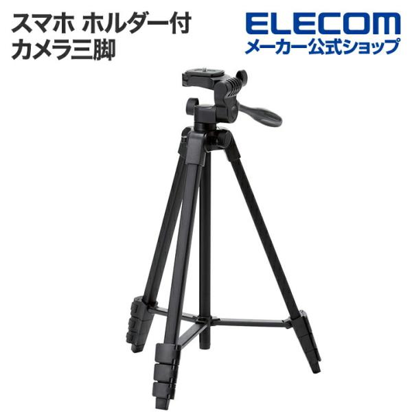 エレコム スマホ ホルダー 付 カメラ三脚 軽くてコンパクトなのに安定感抜群 3段階伸縮 カメラ三脚 ブラック┃P-STSRSLSBK-AZ