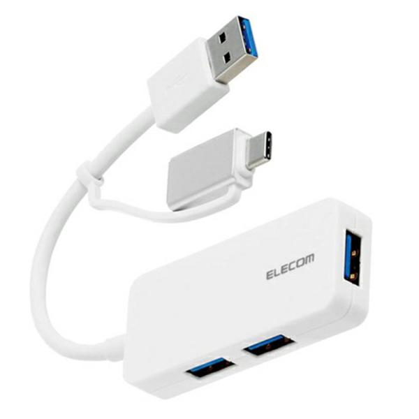 エレコム USB Type-C(TM)変換アダプター付き USB 5Gbps超コンパクトハブ U3H-CAK3005BWH ホワイト