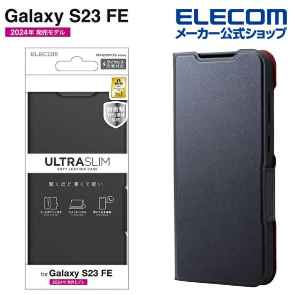 Galaxy S23 FE (SCG24) 用 Galaxy S23 FE ソフトレザーケース 薄型 磁石付 GalaxyS23 FE レザーケース 手帳型 ブラック┃PM-G236PLFUBK エレコム 在庫処分