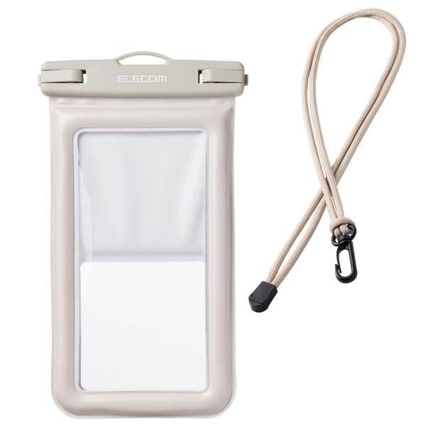 エレコム P-WPSF05GB グレージュ スマホ 防水スマホケース IPX8 6.9インチ以下のスマホ 首かけ ショルダーストラップ