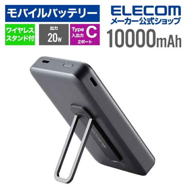 エレコム モバイルバッテリー ワイヤレス 10000mAh 20W スタンド付き リチウムイオン電池 ワイヤレス 充電器 マグネット対応 ブラック EC-C26BK