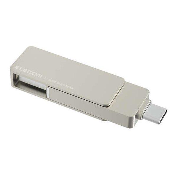 - スマホのデータバックアップがもっと便利に。iPhone 15シリーズにケースを付けたまま直挿しできる、USB Type-C(TM)/USB-Aコネクター両対応の外付けSSDです。USB 10Gbps(USB3.2(Gen2))に対応し、読み込み時最大500MB/sの高速データ転送を実現し、大容量の動画や画像をスムーズに保存できます。※コネクター周りに厚みがあるなど、一部特殊な形状のケースには挿さらない場合があります。■USB Type-C/USB-Aコネクター両対応のカバー回転式外付けSSDUSB Type-C/USB-Aコネクター両対応のカバー回転式外付けSSDです。※本製品は1個入りです。■USBメモリサイズで大容量携帯・収納にも便利なUSBメモリサイズで大容量を持ち運べます。■ケースを付けたまま直接挿すことが可能USB Type-Cコネクターはゆとりある長めの設計で、iPhone 15シリーズにケースを付けたまま直接挿すことが可能。データのバックアップを取るのに便利です。※コネクター周りに厚みがあるなど、一部特殊な形状のケースには挿さらない場合があります。■高速データ転送を実現読み込み最大500MB/s、書き込み最大450MB/sの高速データ転送を実現しています。※最大転送速度はエレコム社環境による実測値であり、すべての環境において保証するものではありません。■USB Type-CとUSB-Aのダブルコネクター仕様USB Type-CとUSB-Aのダブルコネクター仕様。iPhone 15シリーズを始めとしたスマートフォン、Windowsパソコン、Mac、各種タブレットなど異なるデバイス間のデータ移動も本製品1つで簡単でできます。■本体一体型の回転式コネクターカバー本体一体型の回転式コネクターカバーを採用。キャップの紛失を防止します。■接続するだけですぐに使用可能出荷時にexFAT形式でフォーマット済みのため、USB Type-Cポートを搭載したiPhoneやMacBook、iPadなどでも、ケーブルやアダプターを別途購入することなく、接続するだけですぐに使用可能です。■より快適なゲームプレイが可能ゲームへの接続も可能です。PlayStation 4、PlayStation 4 Pro、PlayStation 5に接続し、ゲームデータを外付けSSDに保存することで、ゲームの起動時間やセーブデータのロード時間が短縮され、より快適なプレイが可能です。■PlayStation 5の空き容量を確保可能PlayStation 5に接続し、PlayStation 5のゲームデータを外付けSSDに保存することで、本体ストレージの空き容量を確保できます。PlayStation 5で使用する場合は、PlayStation 4のソフトプレイ時のみ可能となります。PlayStation 5のゲームデータを外付けSSDから起動することはできません。■保証期間は「1年」保証期間を「1年間」としていますので、安心してご利用いただけます。■USBバスパワー駆動外部電源を必要としないUSBバスパワー駆動なので、USBポートに接続するだけですぐに使えます。■ストラップホールを装備お好みのストラップを装着できるストラップホールを装備しています。※本製品にストラップは付属していません。■大切なビジネスデータも安心して扱える!エレコム社Webサイトからダウンロードすることで、パスワード自動認証機能付暗号化セキュリティソフト「PASS×AES」あるいは「PASS」のみでの使用が可能です。パスワード認証方式のセキュリティソフトですが、あらかじめセキュリティソフトに登録したパソコン(3台まで)については、「パスワード自動認証機能」により、パスワードを入力することなく、接続するとすぐに「データにアクセスできます。」■自社環境認定基準を1つ以上満たし、『THINK ECOLOGY』マークを表示した製品です。「THINK ECOLOGY」マークは、 従来よりも“より環境負荷が少ない”製品であることを示すシンボルとして制定しています。エレコムグループでは、その対象となる製品をより多くつくり、マーク表示を行い、 積極的にお客様に選んでいただけるよう努力を続けて参ります。・廃棄物削減に取り組み、製品に同梱する取扱説明書等をペーパーレス化した製品です。・環境保全に取り組み、製品の包装容器におけるプラスチック重量を、社内基準製品より20%以上削減した製品です。