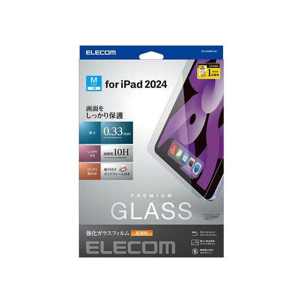 ELECOM エレコム 11インチiPad Air(M2)用ガラスフィルム 高透明 ガイドフレーム付 / TB-A24MFLGG